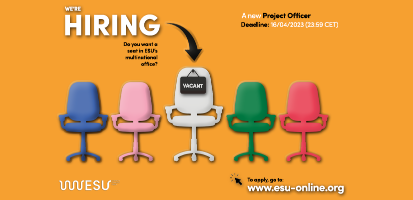 Are you a value-driven professional passionate about the student movement and advocating for quality and inclusive education? Then apply now for ESU’s position: we are looking for a Project Officer to join our team and implement our work to promote “Equal educational and social opportunities in an open and democratic Europe where students shape a sustainable future.”
