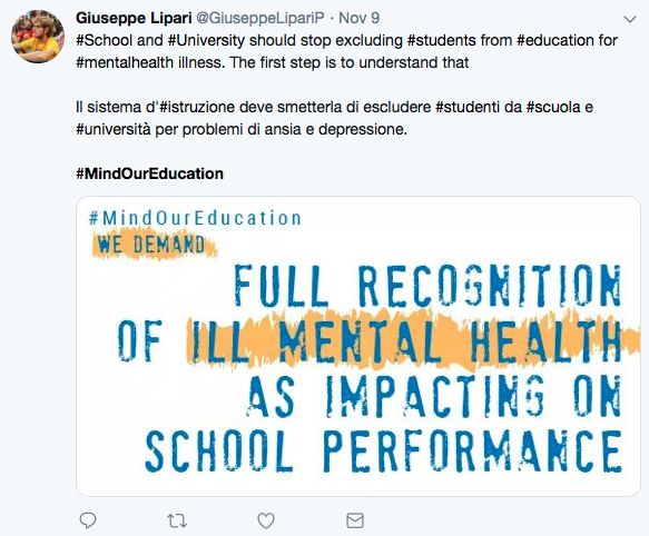This year, the campaign focused on the Mental Health of students under the title “Mind Our Education”. One of ESU’s strategic political priorities for the period 2018-2020 is to advocate for a better specific support for students with health issues including mental health.