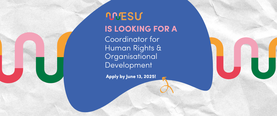 The Executive Committee (EC) hereby issues the call for the position of Coordinator for Human Rights and Organisational Development at the European Students’ Union (ESU), which will be held for 12 months, from August 1st, 2025, to July 31st, 2026.