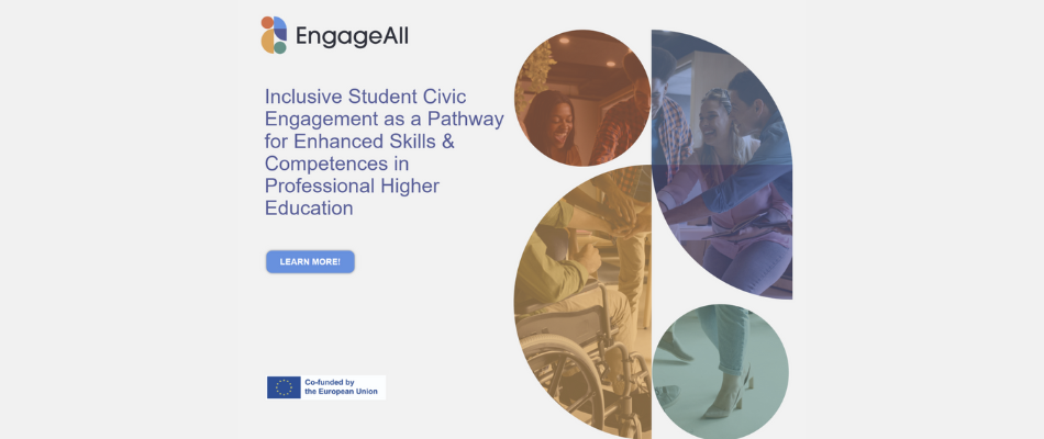 On 27 May 2025, the EU co-funded project EngageAll launched its first Peer Learning Webinar, “Empowering Engagement: Inclusion & Civic Participation in PHE,” bringing together students, representatives of the higher education and voluntary sectors, and EU representatives for an interactive online event. Organised by ESU, EURASHE, IDE, and KIC, the two-hour session introduced the project’s goals and opened a European dialogue on fostering inclusive student engagement in professional higher education. The event featured a high-level panel including Kari Gardelin (European Commission), Arno Schrooyen (ESU), Gabriella Civico (CEV), and John Edwards (EURASHE), who shared insights on civic participation, volunteering, and the role of institutions in empowering students. Engaging tools like Miro, live polls, and word clouds encouraged participants to reflect on challenges and define civic engagement from their own perspectives. The webinar concluded with key takeaways from the speakers and an invitation to continue the conversation. Stay tuned for our next Webinar that will take place in October 2025…